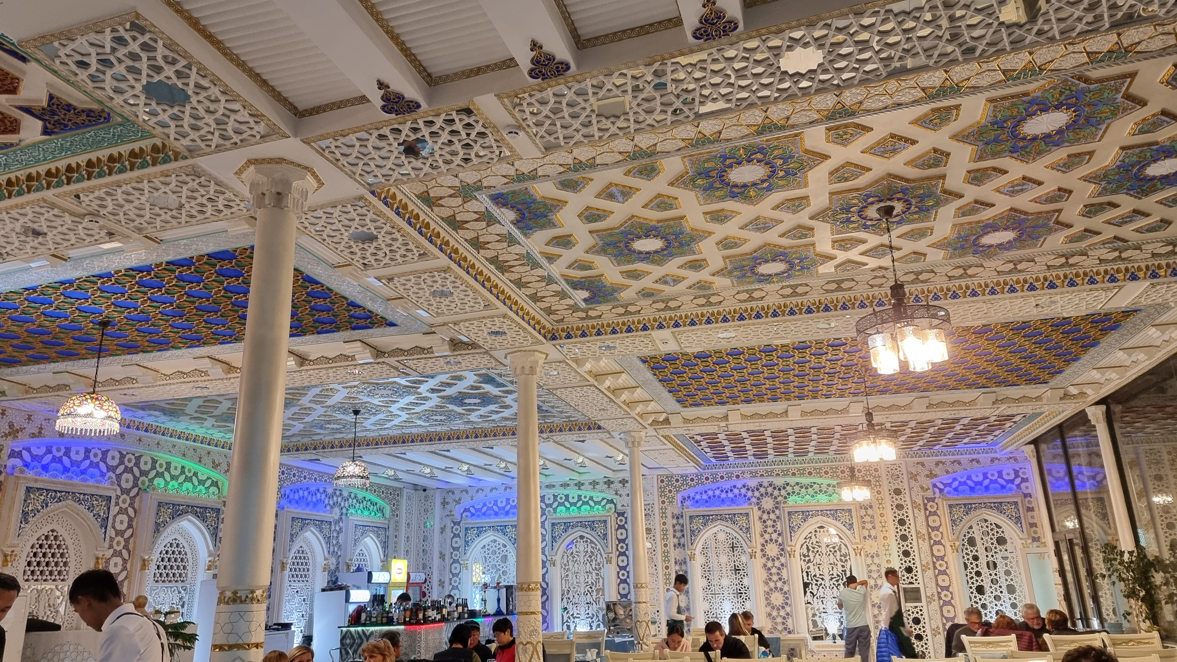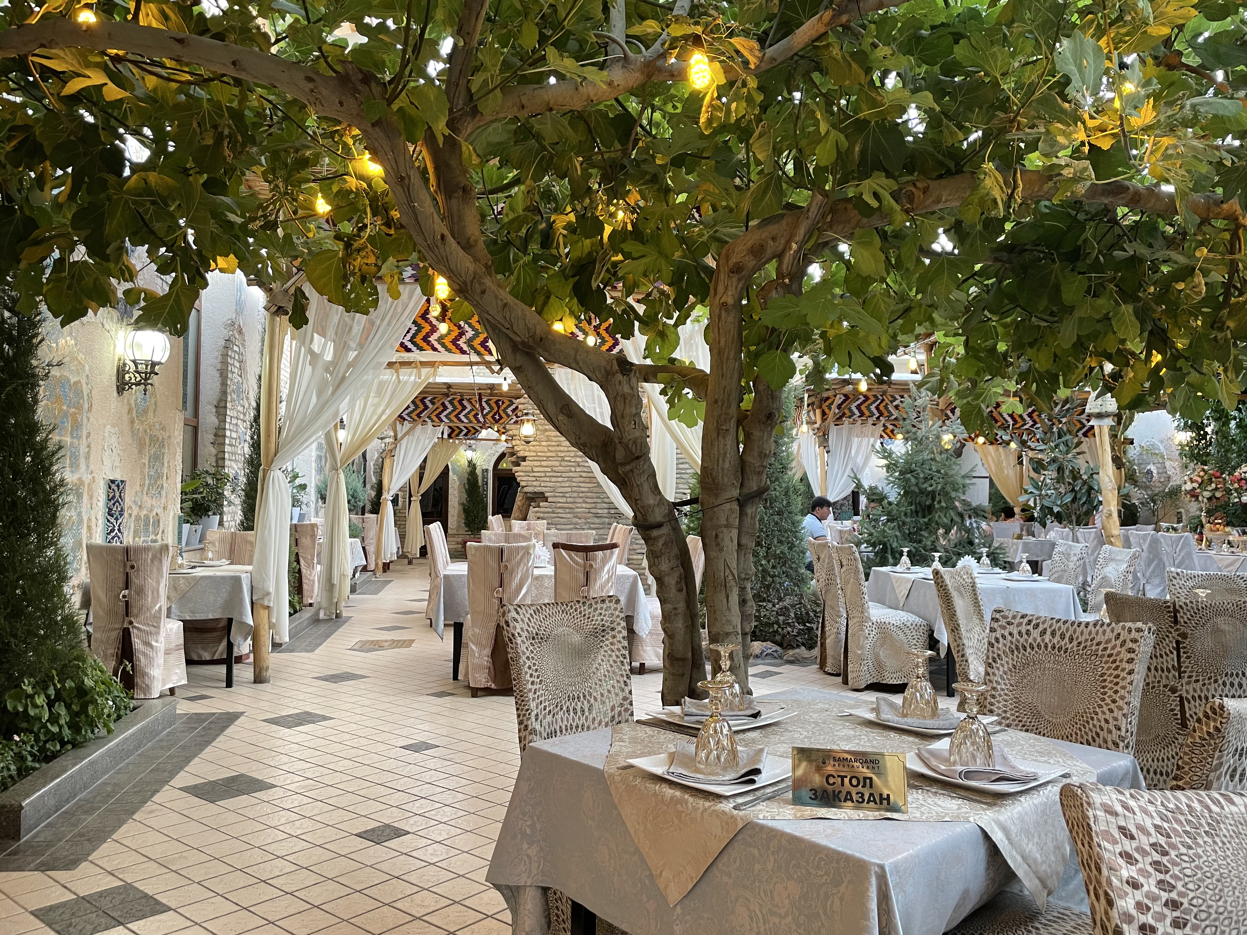 Ресторан Samarkand Restaurant — одно из самых популярных заведений Самарканда, известное сочетанием аутентичной узбекской кухни и праздничной атмосферы. Он расположен в центре города и является излюбленным местом как для местных жителей, так и для туристов, стремящихся попробовать традиционные блюда региона. Кухня и меню Заведение специализируется на узбекской кухне с элементами русских и европейских традиций. Меню включает классические блюда, такие как плов, шашлык, манты и лагман, а также салаты «Оливье» и «Шубад». Гости отмечают большие порции, ароматные мясные блюда и свежие салаты. Есть вегетарианские и безглютеновые опции, а также разнообразные напитки — от домашнего чая до вин и коктейлей. Атмосфера и интерьер Интерьер оформлен с восточной элегантностью: высокие потолки, люстры и традиционные узоры создают атмосферу уюта и торжественности. Ресторан часто сравнивают с залом местной свадьбы — здесь проходят музыкальные вечера и живые выступления, а также банкеты и торжества. Обслуживание и впечатления гостей Посетители отмечают доброжелательный персонал и внимательное обслуживание. В отзывах подчеркиваются вкус блюд, уютная атмосфера и хорошее соотношение цены и качества (средний чек — 50 000–150 000 сумов на человека). Иногда упоминаются небольшие задержки с подачей блюд в часы пик, что объясняется высокой загруженностью. В целом отзывы оценивают ресторан как одно из лучших мест для знакомства с узбекской кухней. Значение Samarkand Restaurant считается гастрономической визитной карточкой города. Благодаря качественной кухне, большому залу и гостеприимству он стал символом современного самаркандского гостеприимства, сохраняя дух Великого Шёлкового пути.