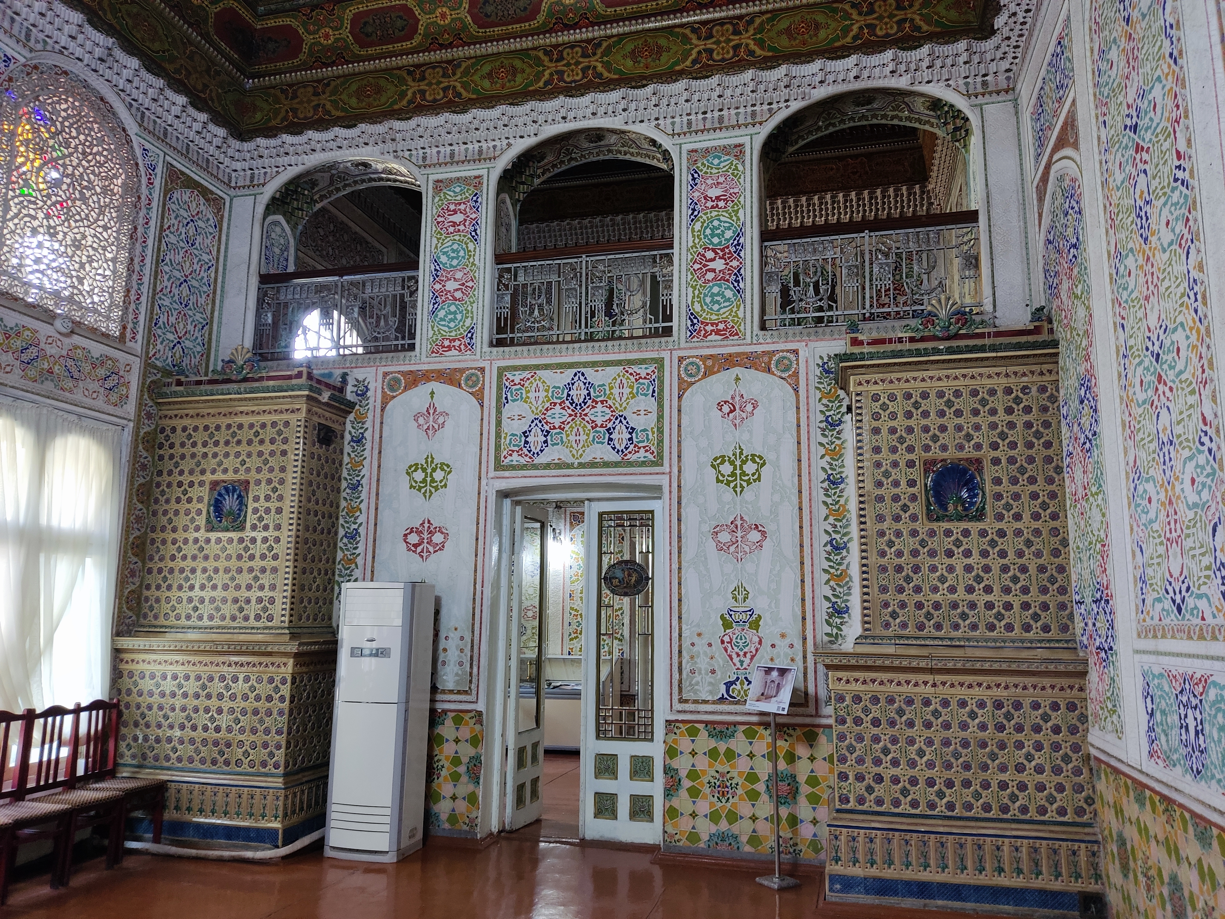 Самаркандский областной краеведческий музей — один из крупнейших исторических музеев региона. Он расположен в старинном здании начала XX века, которое ранее принадлежало известному самаркандскому купцу Абраму Калантарову. Постройка выполнена в эклектичном архитектурном стиле и сегодня является памятником архитектуры, охраняемым государством. В создании художественного оформления здания участвовали известные мастера своего времени — усто Кемаль, усто Сади, усто Хафиз и другие. Интерьер музея отличается богатым декоративным убранством: резной деревянный потолок украшен орнаментами и расписан масляными красками, стены оформлены изящной ганчевой резьбой, а витражные решётки придают залам особую атмосферу. Особого внимания заслуживают декоративные керамические печи и хрустальная люстра, которая является одним из украшений главного зала. Экспозиции музея Основная экспозиция первого этажа посвящена истории Самаркандского края — от древнейших времён до начала XX века. Среди самых ранних экспонатов представлены каменные орудия труда, найденные на стоянках древних людей в районе Зирабулака и других археологических памятников. Здесь также можно увидеть окаменелости аммонитов, кости древних животных и останки человека эпохи кроманьонцев. Значительное место занимают находки бронзового и железного веков: бронзовые топоры, украшения, зеркала и предметы быта. Часть из них обнаружена на археологических памятниках Ургутского района и окрестностей Пенджикента. Период древнего Согда Отдельная часть экспозиции посвящена истории Согда — древнего государства, существовавшего в долинах Зарафшана и Кашкадарьи уже в VIII–VI веках до нашей эры. Столицей этого государства был Самарканд. Позднее Согд вошёл в состав державы Ахеменидов, а затем оказался под властью Александра Македонского и его преемников — Селевкидов. Этот период представлен керамическими изделиями, монетами и предметами быта. Кушанская эпоха Экспозиции, посвящённые Кушанскому периоду, рассказывают о развитии ремёсел, торговли и городской культуры. Среди экспонатов — монеты кушанских правителей, ювелирные изделия, ткани и керамика. Терракотовые статуэтки богини плодородия Анахиты и погребальные предметы дают представление о религиозных традициях того времени. Средневековая история После арабского завоевания в VIII веке регион стал известен как Мавераннахр. В музее представлены копии фресок древнего Афрасиаба, реконструкции одежды согдийских воинов и образцы оружия того времени. В IX–X веках власть в регионе перешла к династии Саманидов. Несмотря на перенос столицы государства в Бухару, Самарканд оставался важным политическим и культурным центром. В экспозиции можно увидеть образцы керамики с эпиграфическим орнаментом, стеклянные изделия и редкие монеты, свидетельствующие о развитии международной торговли. Эпоха Амира Тимура С приходом к власти Амира Тимура Самарканд стал столицей огромной империи и пережил период расцвета. В музее представлены экспонаты, рассказывающие о развитии ремёсел, караванных путей и Великого шелкового пути. Среди редких предметов — военные и церемониальные барабаны XV–XVI веков, а также редкое издание книги «История Тимура», напечатанное в Амстердаме в 1678 году. Традиционный быт и ремёсла Экспозиции музея знакомят посети