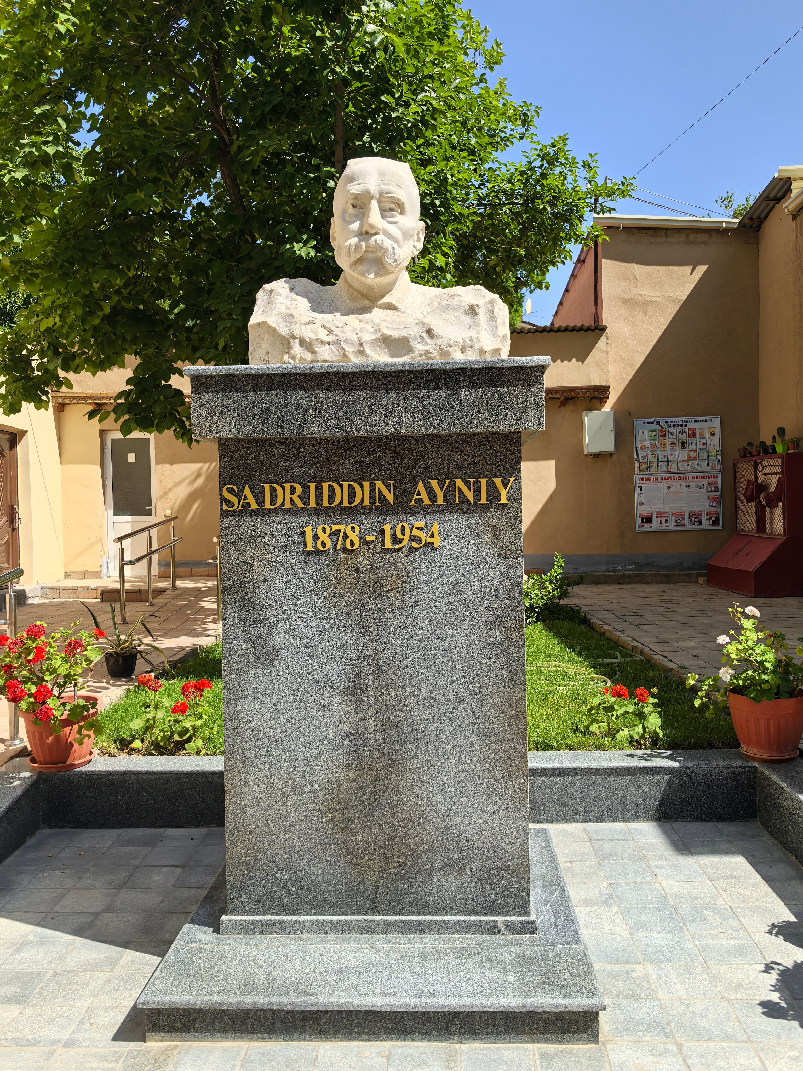 Дом-музей Садриддина Айни (1878-1954), -просветителя, организатора первых новометодных школ в Бухаре, выдающегося поэта и писателя, основоположника современной таджикской и узбекской литературы, расположен в центре древнего Самарканда, недалеко от площади Регистан. Айни поселяется здесь в 1917 г., после пережитых репрессий со стороны бухарского эмира и переезда из Бухары в Самарканд. В этом доме, состоящем из старой (конца XVIII-начала XIX веков) и новой (1930-е годы) построек, писатель проживает более 35 лет. Образ жизни писателя отличался скромностью. Предметы дореволюционного быта в сохраненных жилых комнатах исторически достоверные типичные для традиционной таджикской и узбекской семьи. Здесь все принадлежало Айни и его семье. В старой и новой частях дома сохранились два рабочих кабинета Айни. В первом из них он работал с 1923 по 1937 годы, и написал повести и рассказы "Одина", "Дедушка-раб", "Старая школа", "Смерть ростовщика", романы "Дохунда", "Рабы" и др. В новом кабинете были созданы произведения "Ятим", "Герой таджикского народа Темур-Малик", "Восстание Муканны", "Воспоминания" и др.